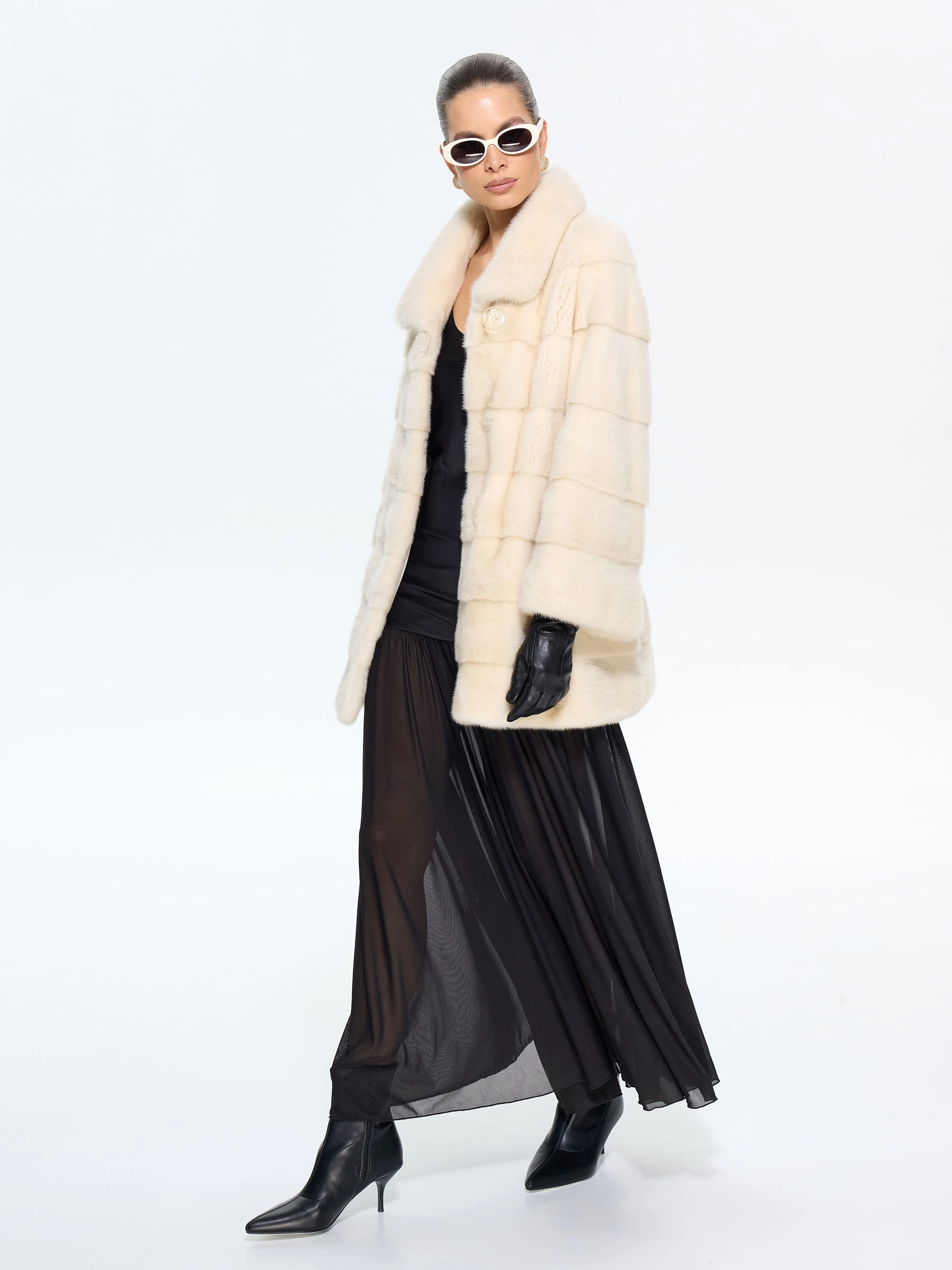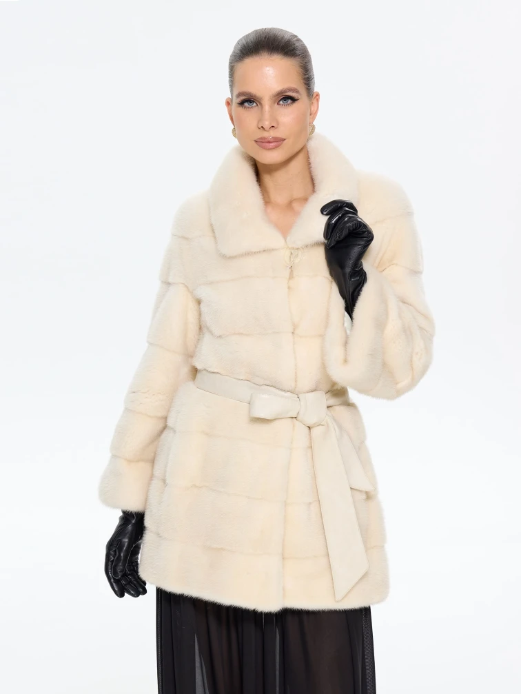 Товар бежевая женская норковая шуба manakas 2478, размер 44, артикул 34270 выполнен из норка с застежкой клипсы. Рассчитан на сезон: зима. Длина изделия 75 см, силуэт прямой.