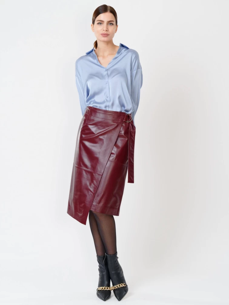 Товар бордовая кожаная юбка миди 07, размер 42, артикул 85420 выполнен из натуральной кожи с застежкой молния. Рассчитан на сезон: демисезон. Длина изделия 65 см, силуэт прямой.
