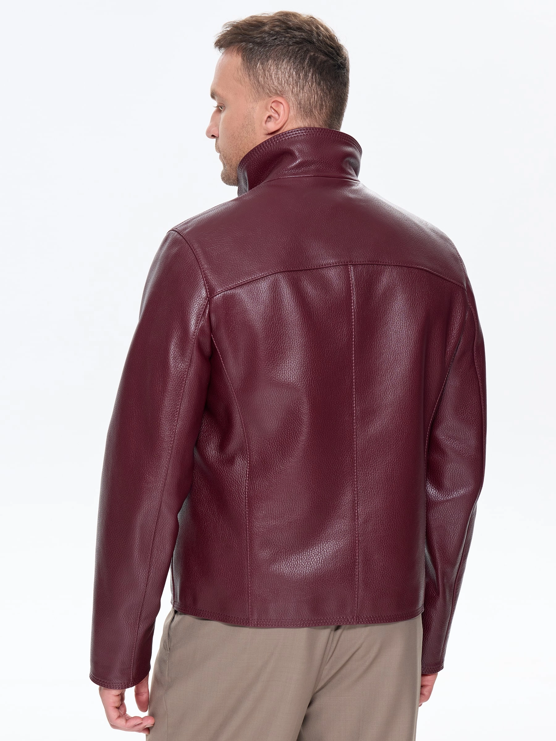 Бордовая мужская кожаная куртка 2010-9, размер 48, артикул 29780