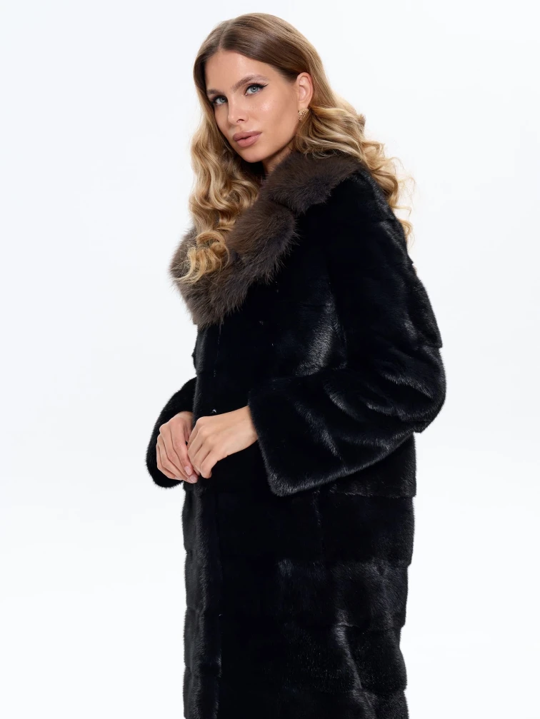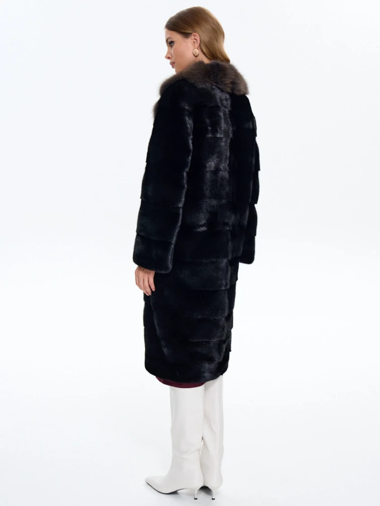 Черная норковая шуба с куницей 2а, размер 44, артикул 65150