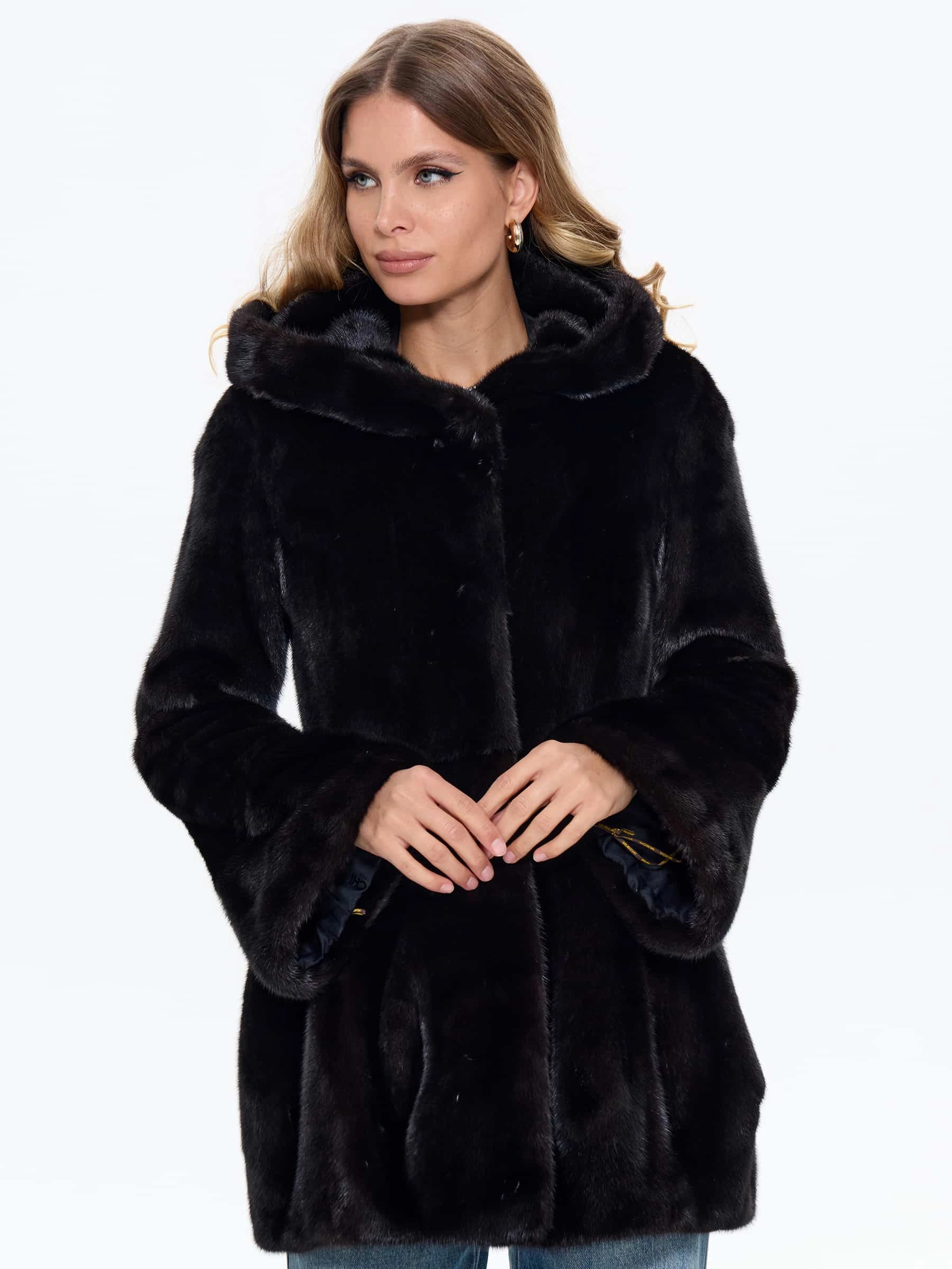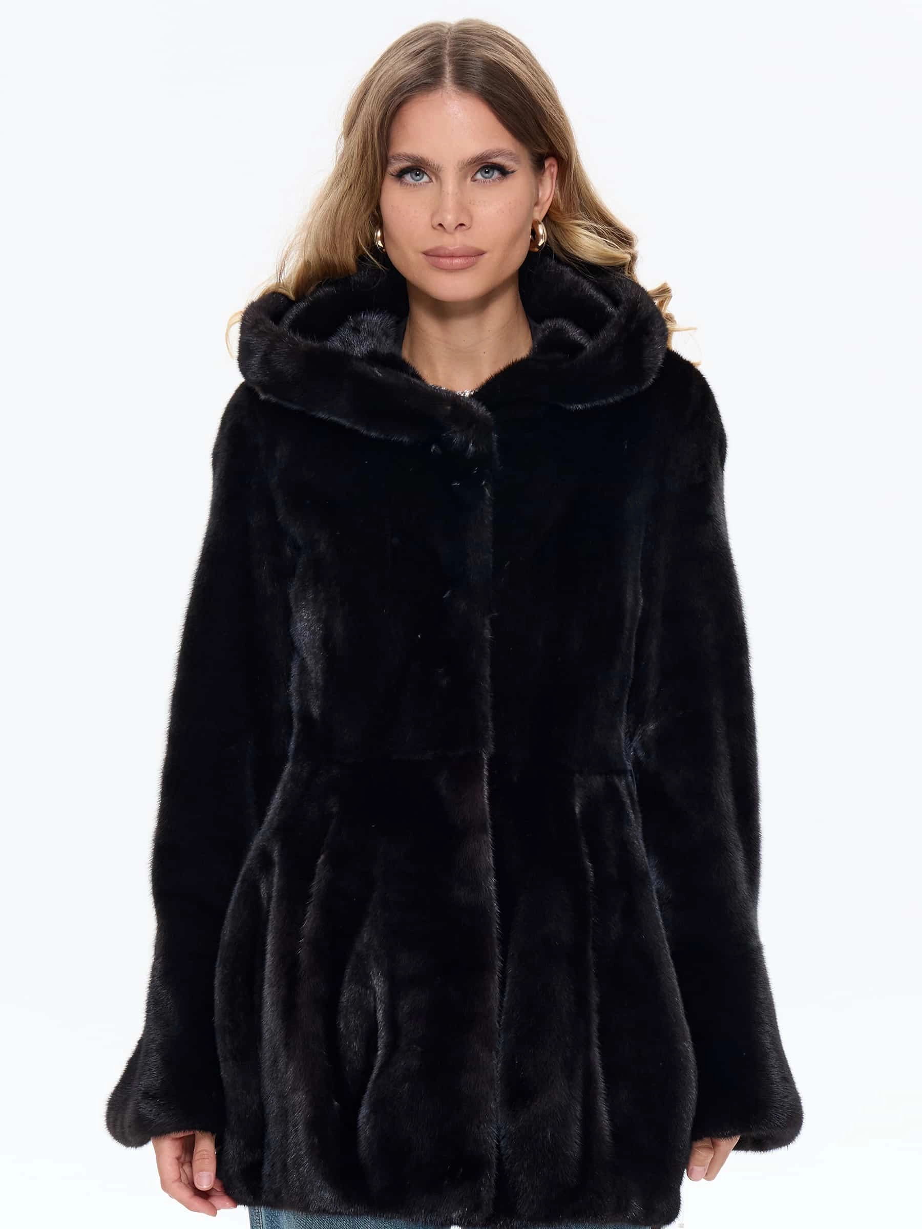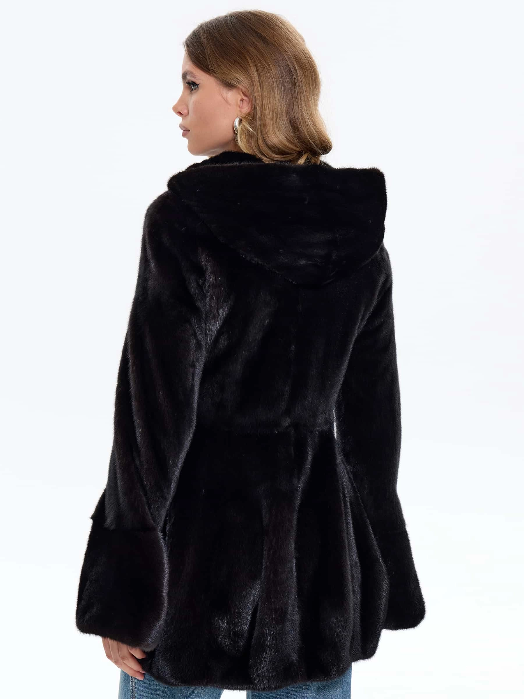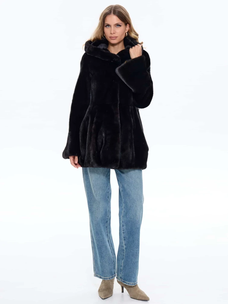 Черная женская норковая шуба BRASCHI Н 717, размер 44, артикул 34410