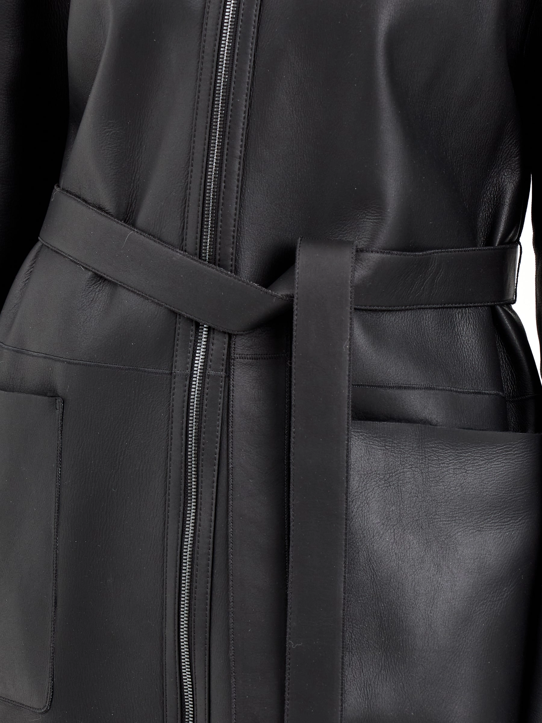 Коричневая длинная дубленка из натуральной овчины мерино свободного кроя с объемным воротником-стойкой. Модель с накладными карманами и изящными высокими боковыми разрезами дополнена длинным поясом, который позволяет менять силуэт. Совет стилиста: сочетайте с водолазкой, кожаными брюками и сапогами-челси для повседневного стиля или наденьте поверх платья с высокими сапогами, подчеркнув талию поясом для элегантного образа. Идеальное сочетание уютной классики и современного дизайна с практичными деталями
