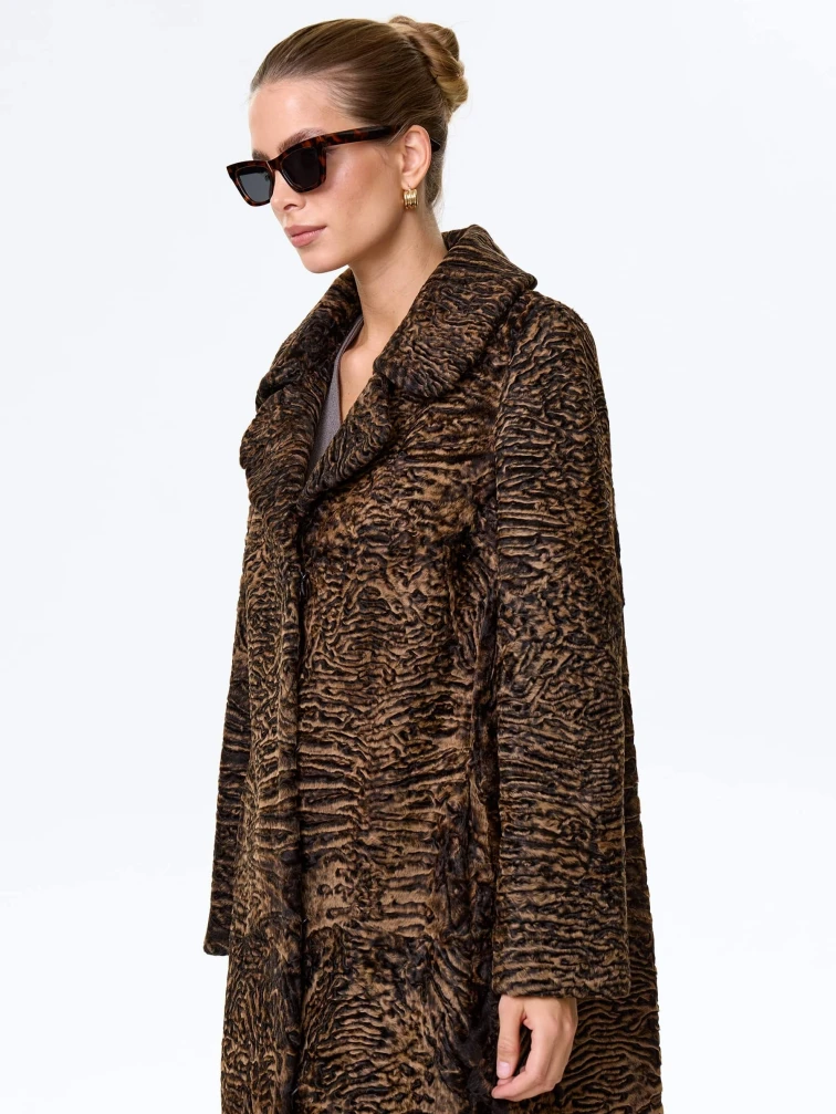 Афганская каракульча темно-коричневого цвета. Английский воротник. Аккуратная работа портных. Чёткая посадка по фигуре. Премиальное качество.