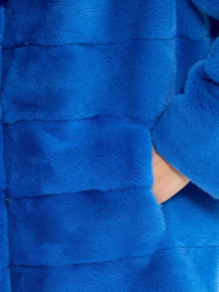 Товар голубая норковая шуба с шиншилой 2а, размер 54, артикул 65460 выполнен из мех норки с застежкой клипсы. Рассчитан на сезон: зима. Длина изделия 73 см, силуэт прямой.
