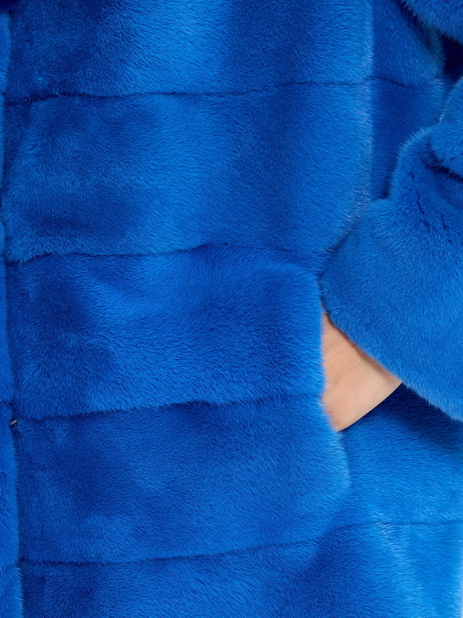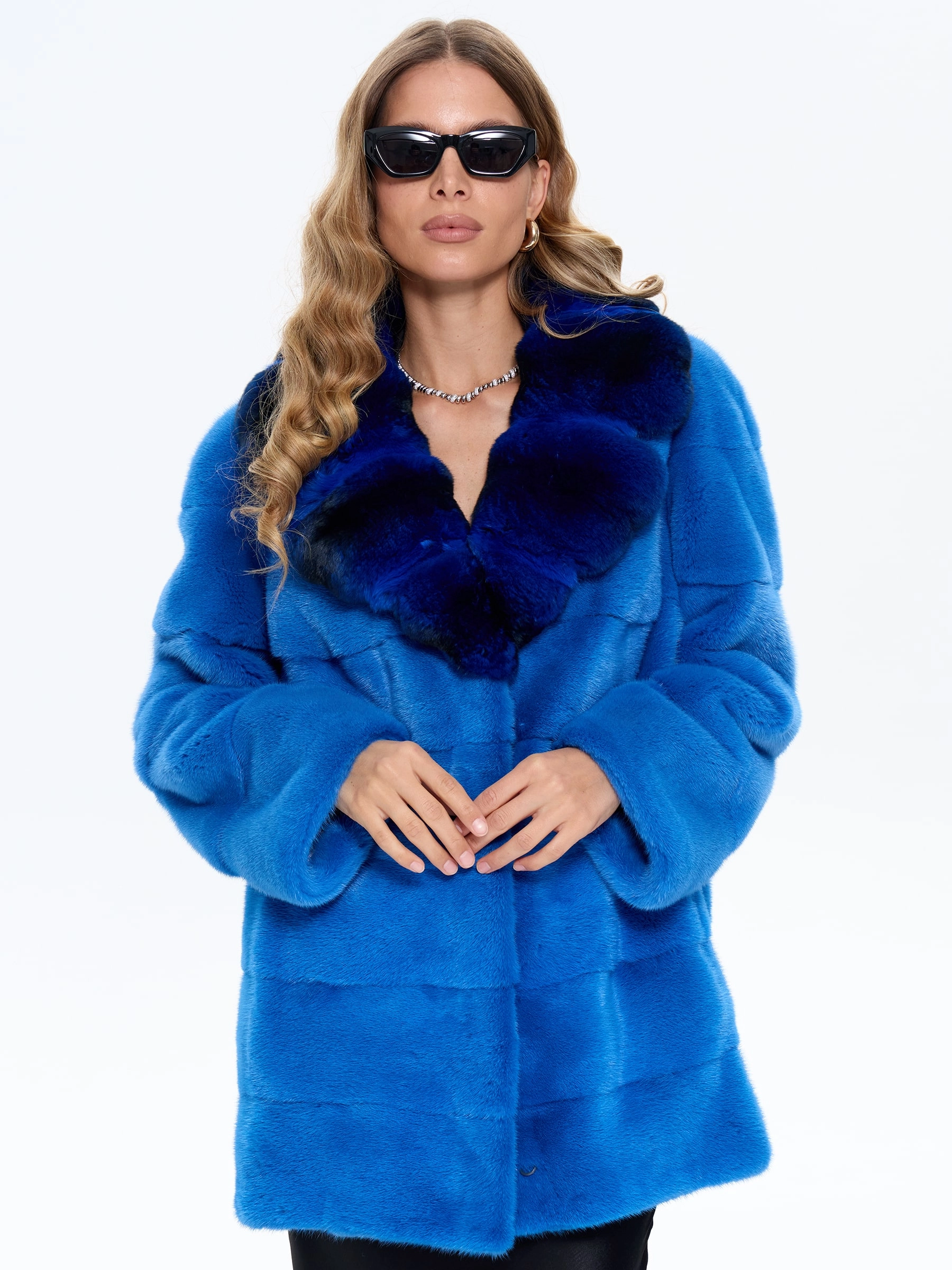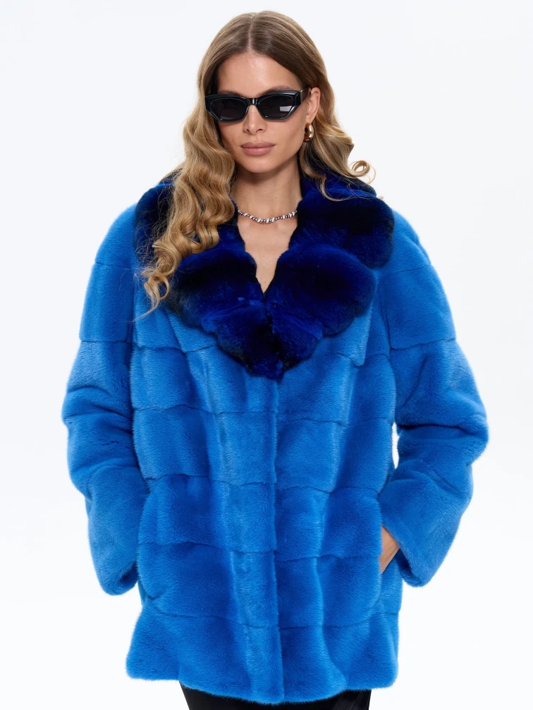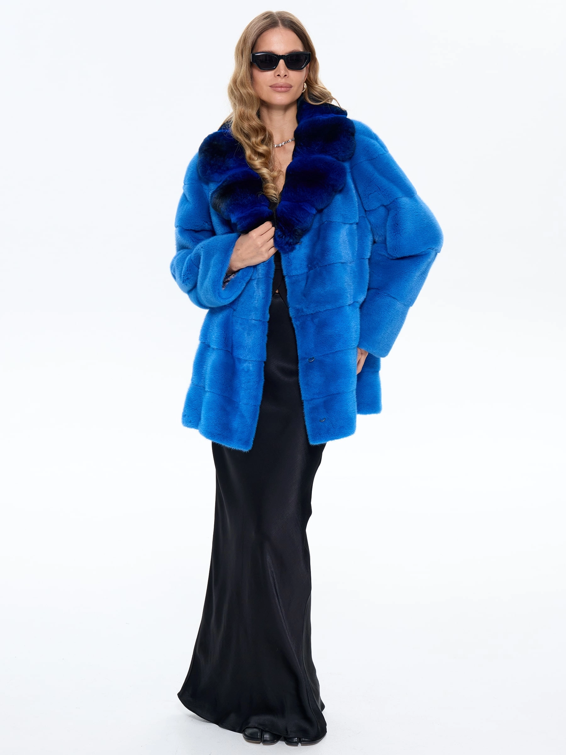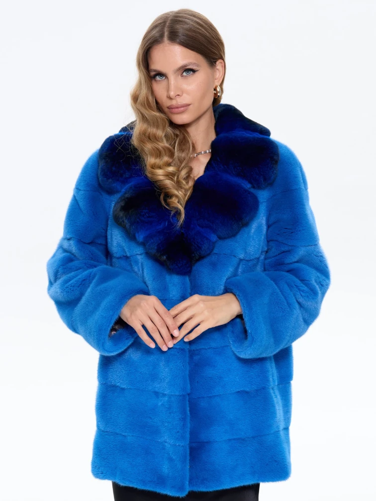 Голубая норковая шуба с шиншилой 2А, размер 54, артикул 65460