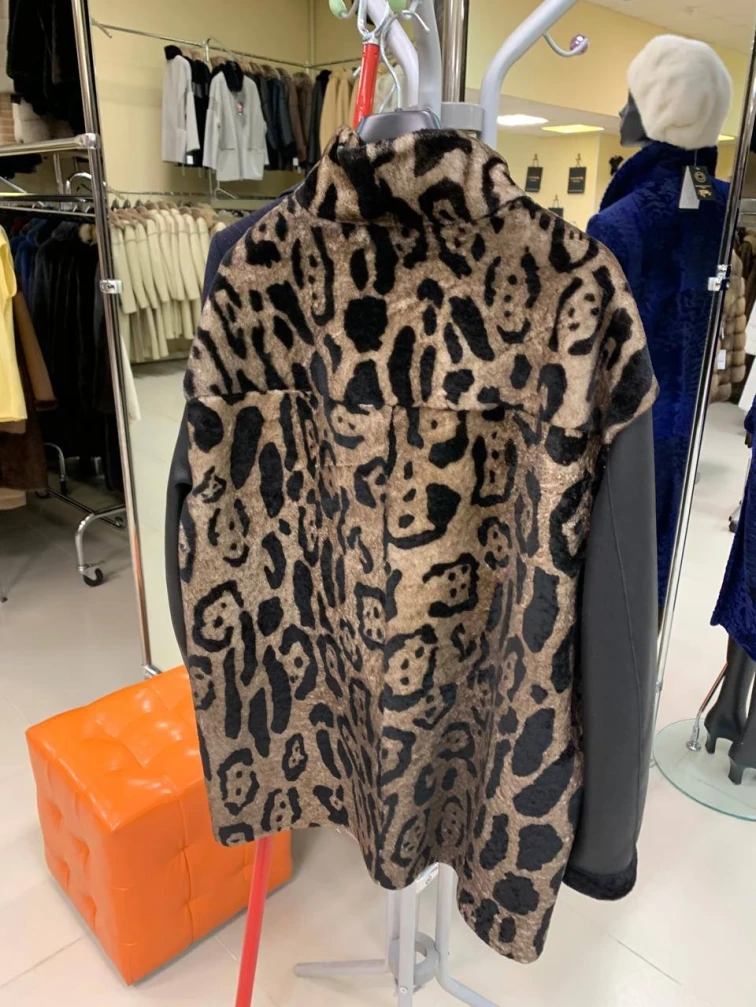 Товар комбинированная женская дубленка 2076, черная, размер 46, артикул 65260. Длина изделия 75 см.
