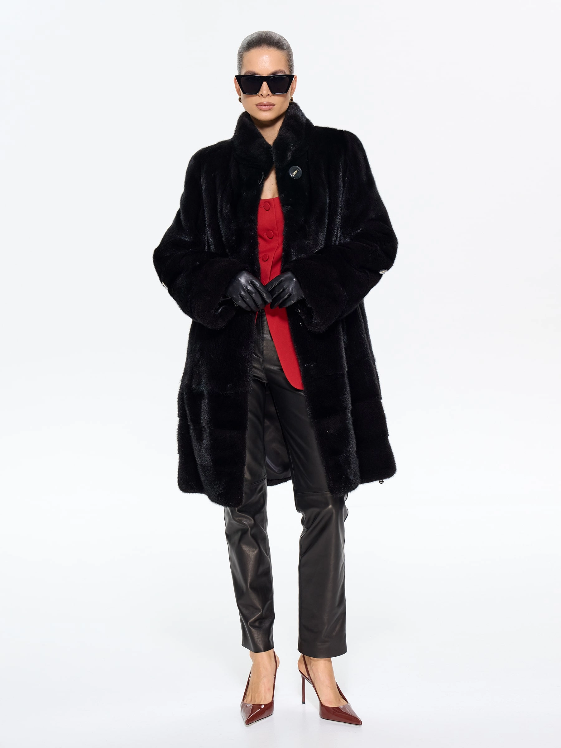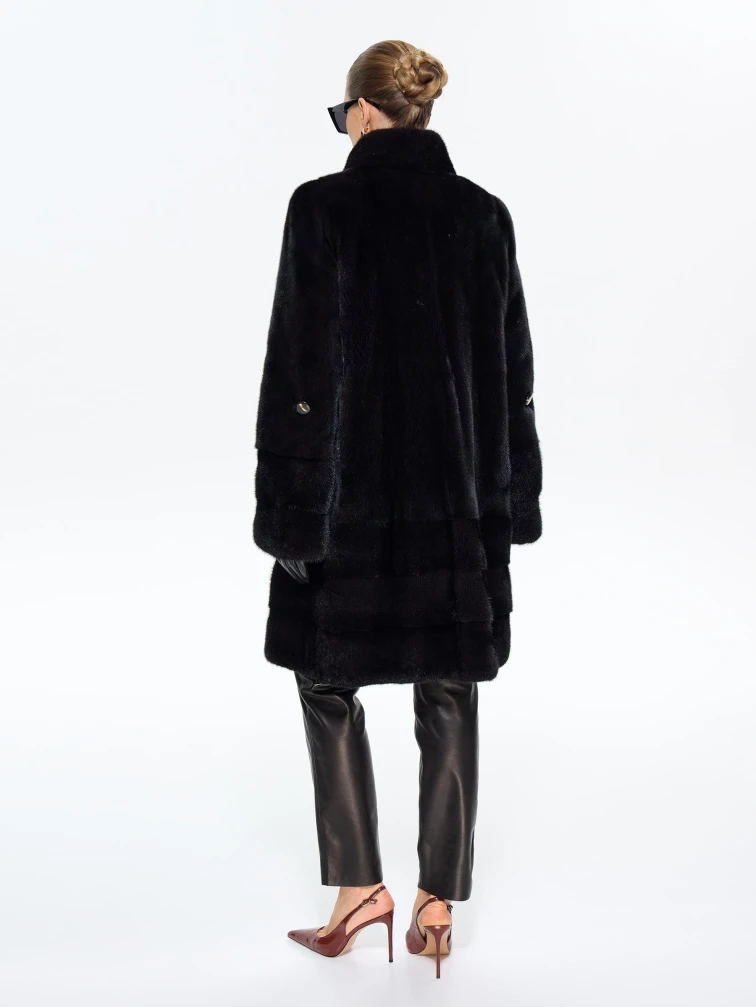 Элегантная шуба из меха норки премиум-класса прямого силуэта и длиной 100 см с воротником-стойкой и втачными рукавами. Эта классическая модель с диагональной раскладкой по подолу и рукавам, карманами и регулируемой внутренней кулиской для изменения силуэта, станет практичной и статусной вещью в вашем гардеробе. Стилисты рекомендуют носить эту роскошную шубу с капюшоном с джинсами-скинни и высокими сапогами для повседневного образа, а также с платьем-миди и каблуками для выхода в свет — её универсальность и утончённая классика покорят любую женщину.