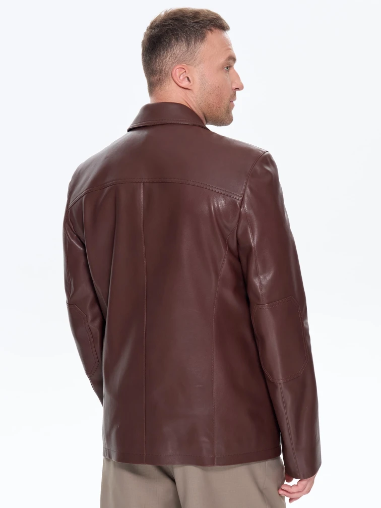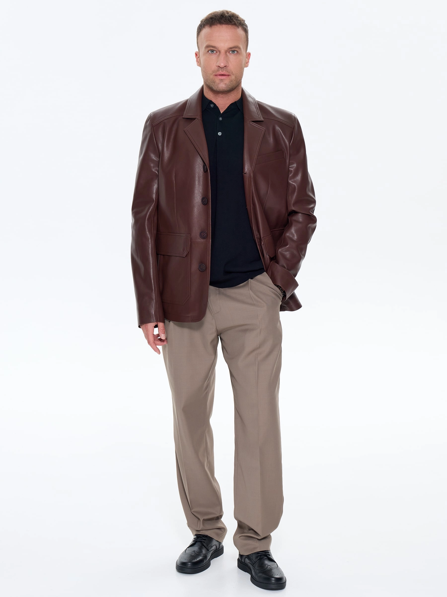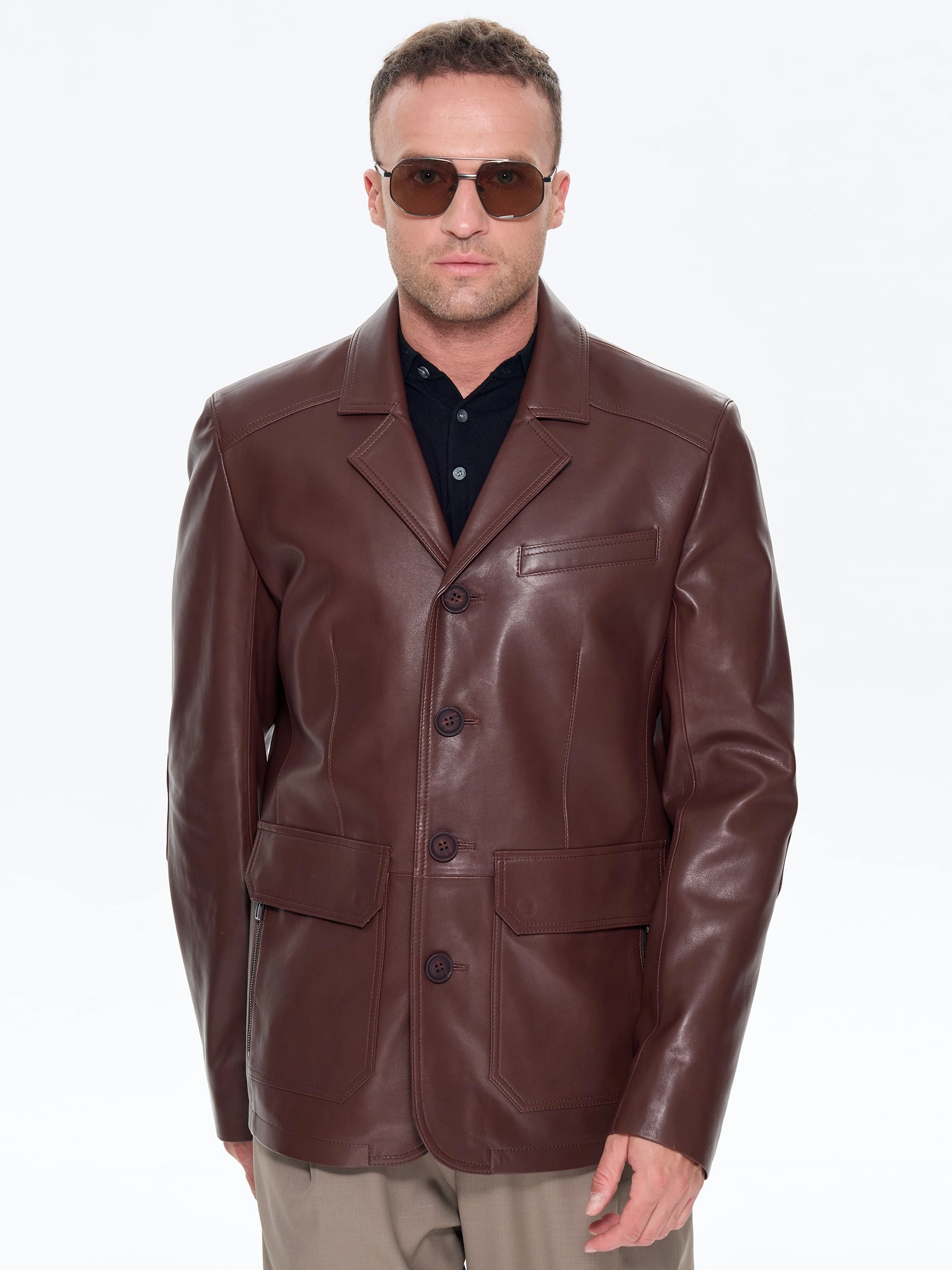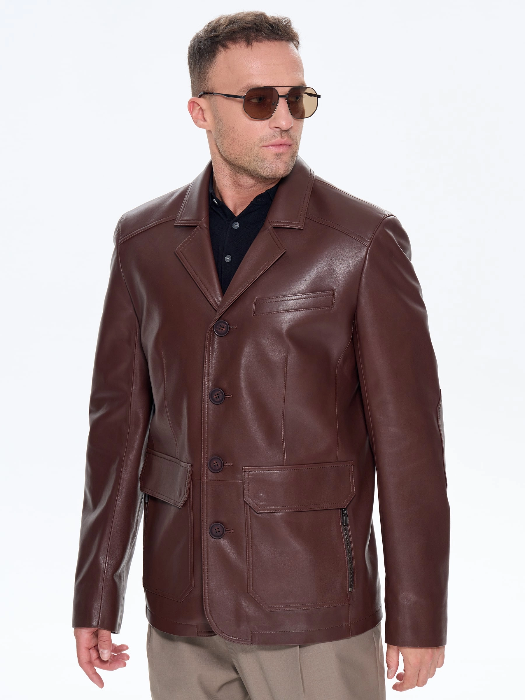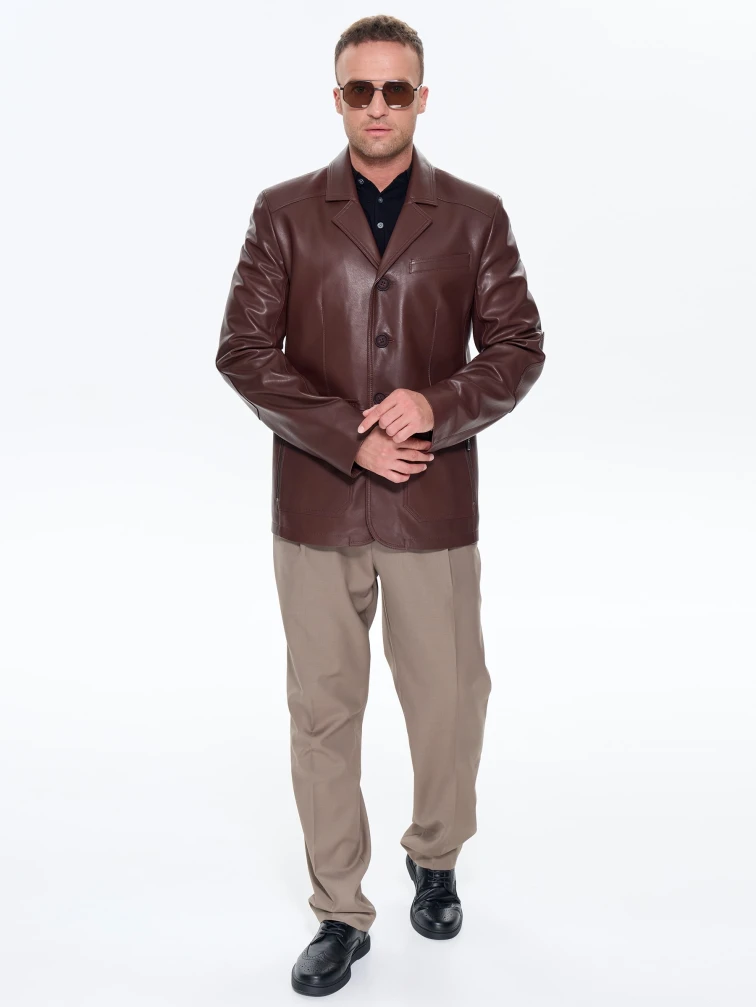 Коричневый мужской кожаный пиджак 530, размер 48, артикул 29770