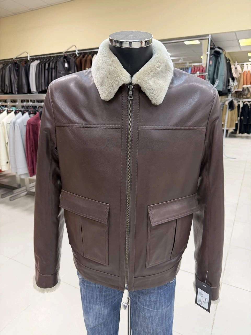 Товар короткая мужская дубленка премиум класса 565мех, коричневая, размер 48, артикул 29810 выполнен из овчина " мерино" с застежкой молния. Рассчитан на сезон: зима. Длина изделия 67 см, силуэт прямой.