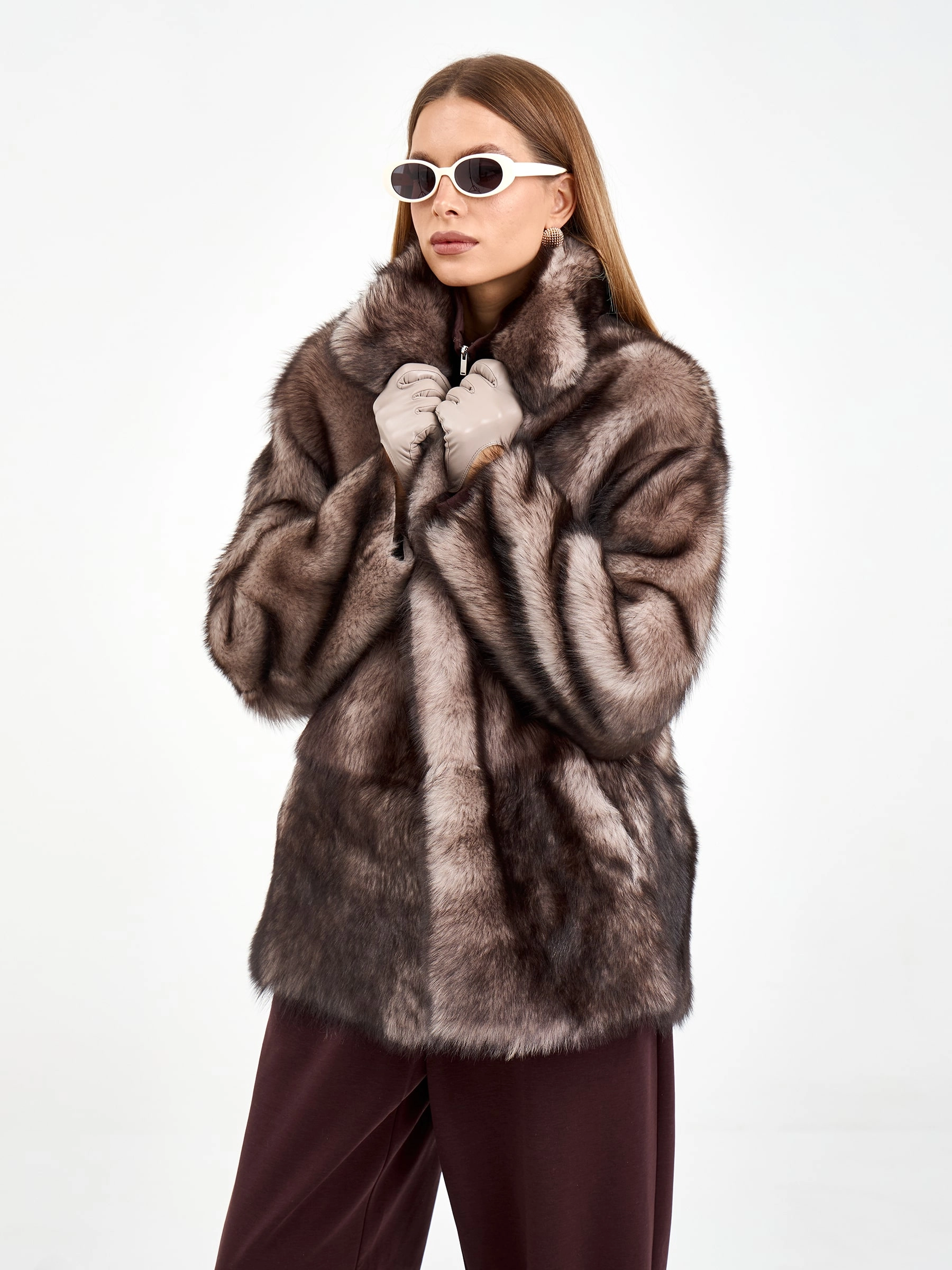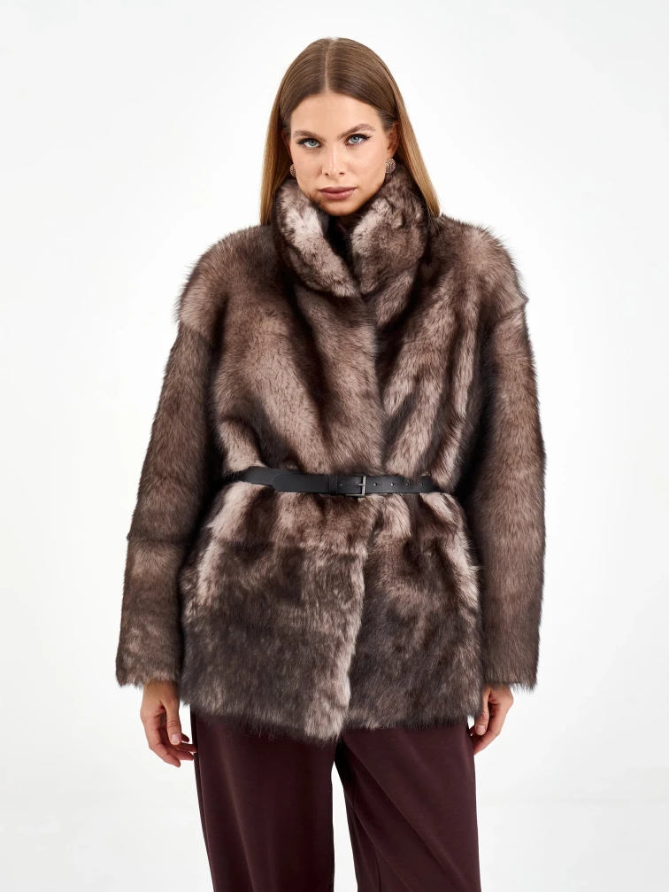Короткая женская дубленка 2072, cерая, размер 42, артикул 64960
