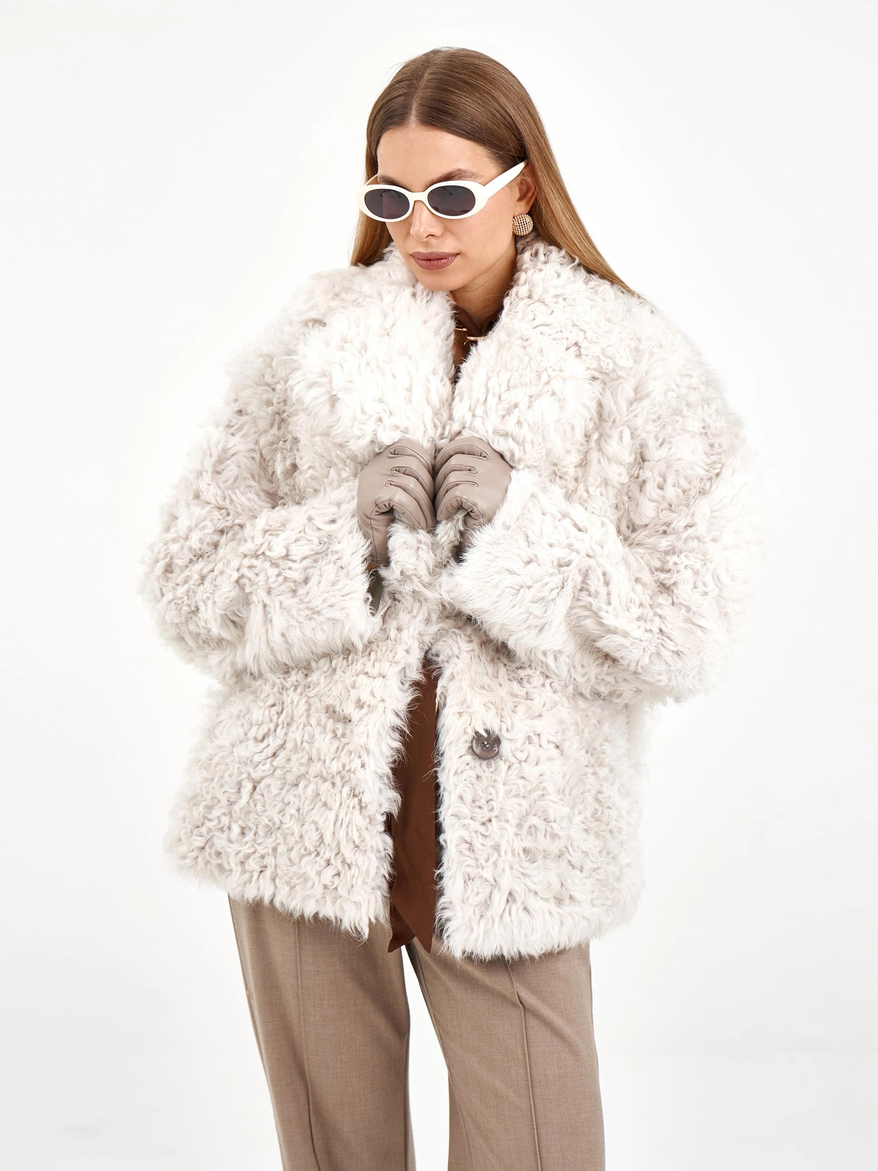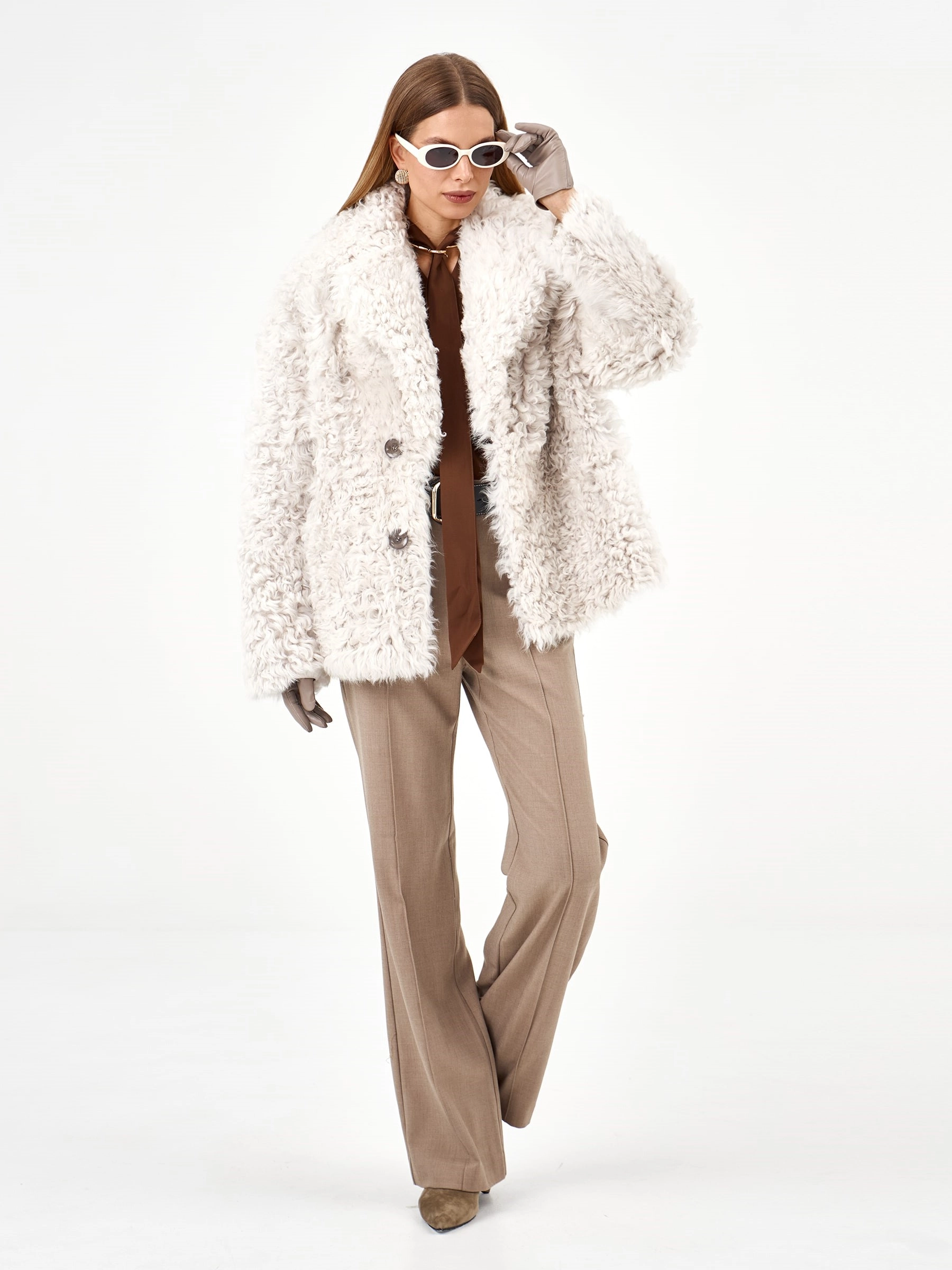 Короткая дубленка из натуральной овчины «Тиградо» — это идеальное сочетание стиля, тепла и комфорта. Модель премиум-класса восхищает своим гипнотизирующим крупным завитком, который создает неповторимую игру текстуры. Невероятно легкая и одновременно исключительно теплая, она станет вашей любимой вещью в холодное время года. Свободный силуэт и отложной воротник подчеркивают непринужденную элегантность. Стилисты рекомендуют носить эту дубленку с кожаными брюками, объемными свитерами и джинсами-скинни, чтобы создать образ с ноткой дерзости и утонченности.