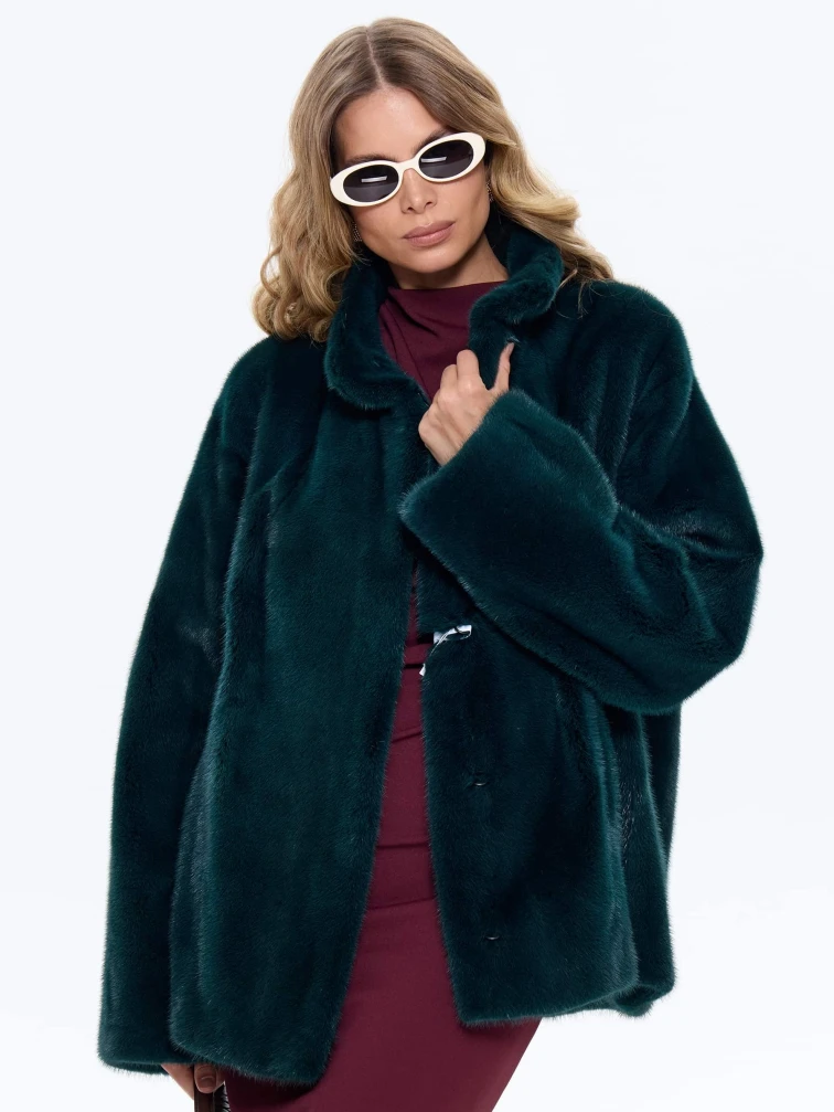 Короткая женская норковая куртка Жанет-2, зеленая, размер 44, артикул 65660