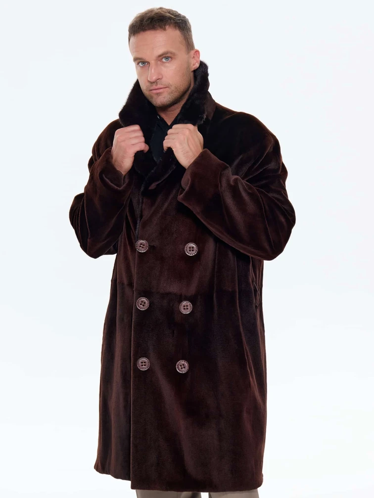 Мужская двубортная норковая шуба CADANO F086389A, коричневая, размер 56, артикул 34540