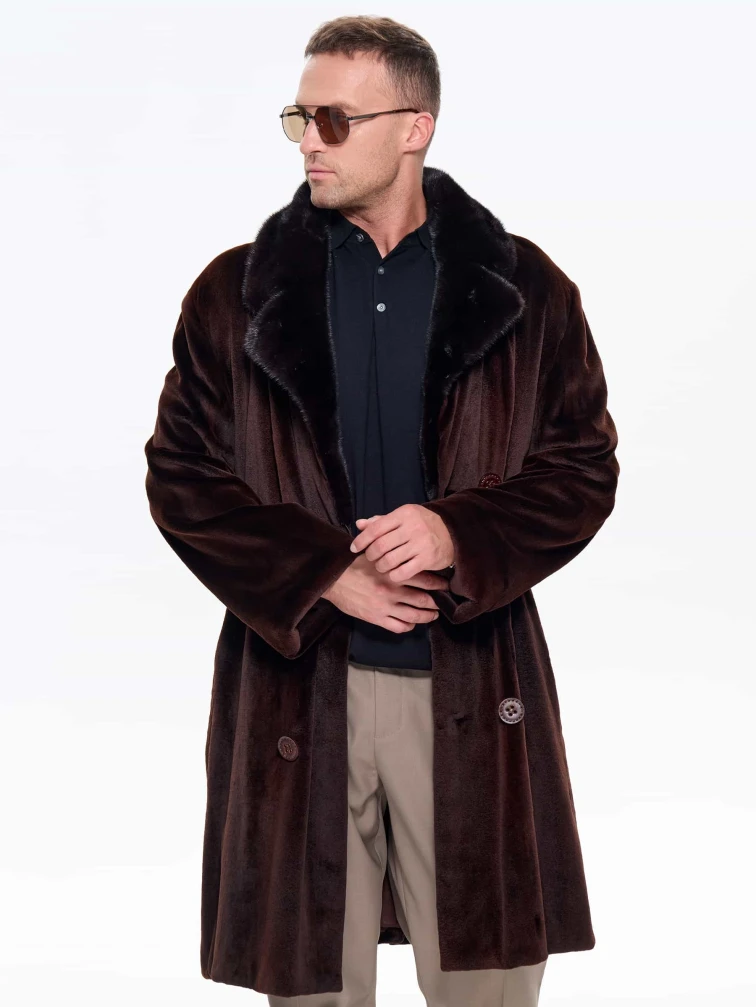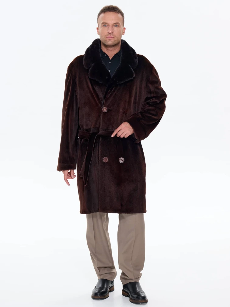 Товар мужская двубортная норковая шуба cadano f086389a, коричневая, размер 56, артикул 34540 выполнен из норка с застежкой пуговицы. Рассчитан на сезон: зима. Длина изделия 105 см, силуэт прямой.