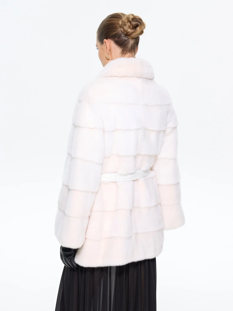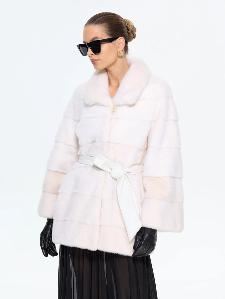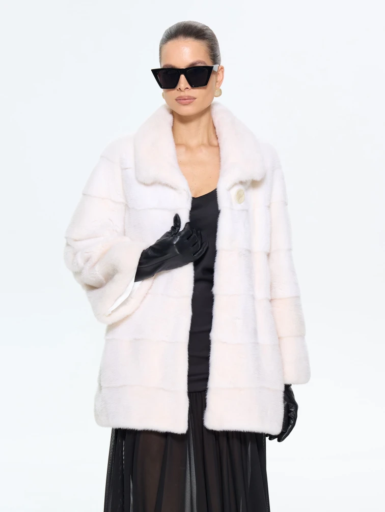 Поперечная женская норковая шуба BRASCHI LE88, белая, размер 42, артикул 34340