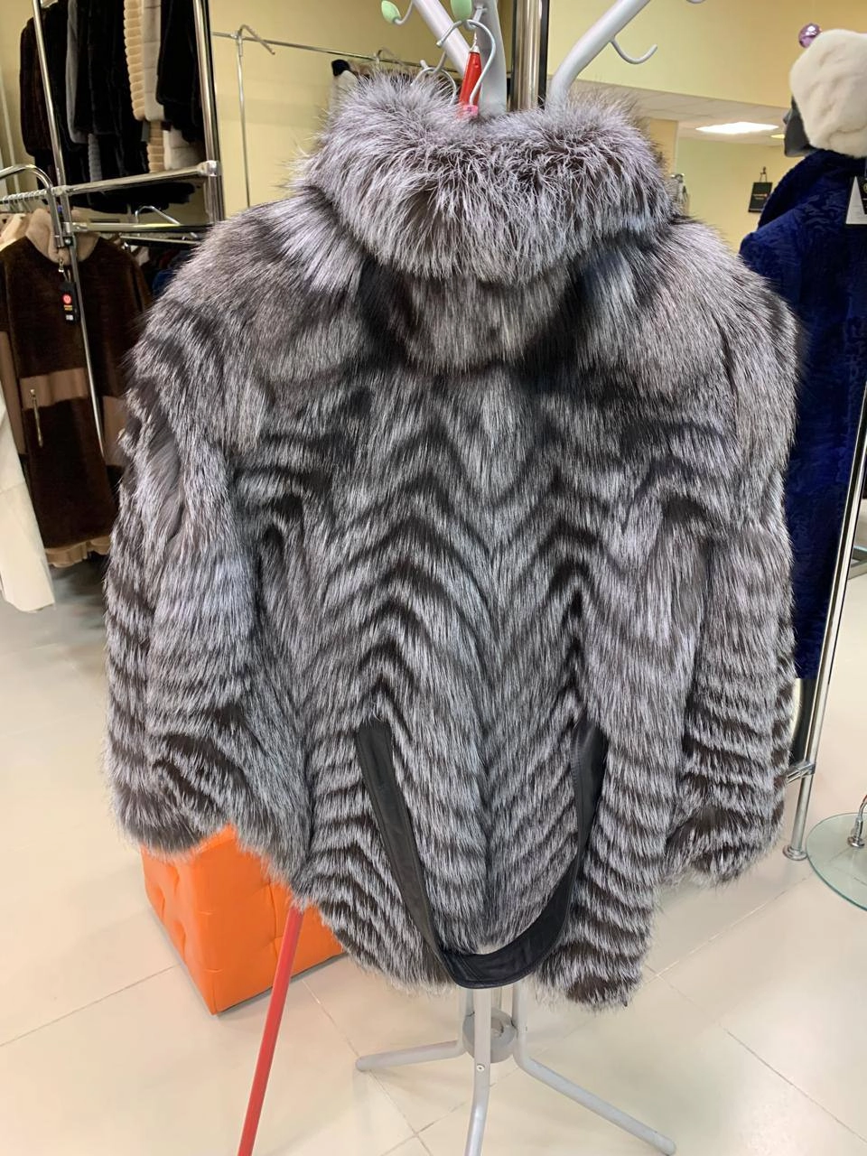Женская короткая шуба из меха лиса Л1010 - 21, серебристо-чёрная, размер 46, артикул 65320