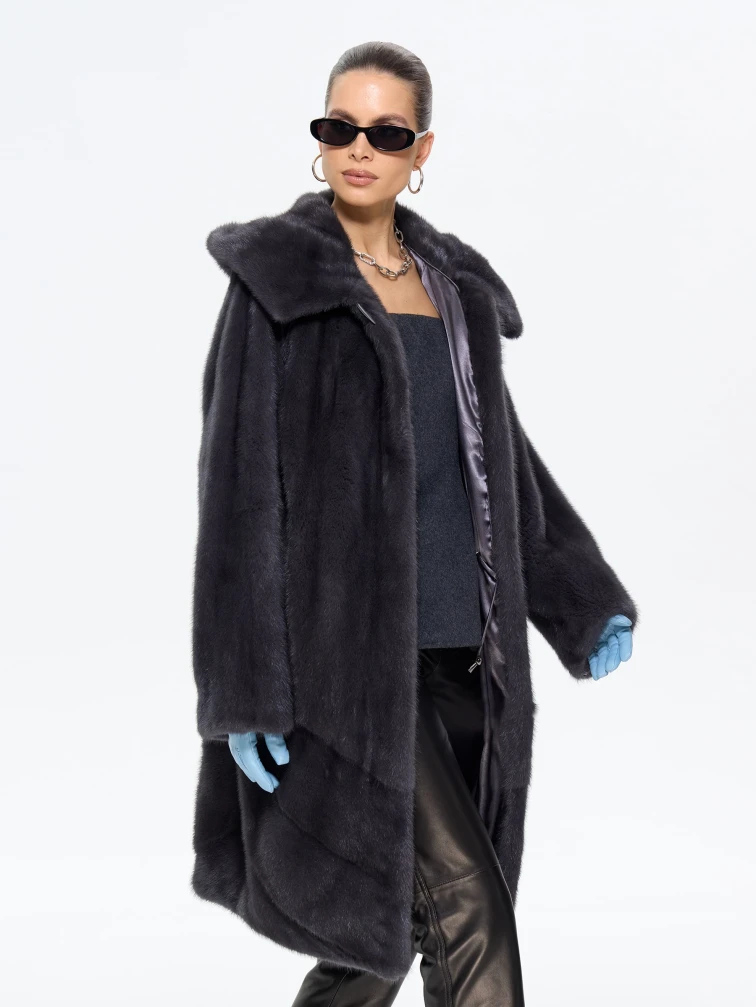 Товар женская норковая шуба с капюшоном м-101-9- 708, графитовая, размер 52, артикул 65370 выполнен из мех норки с застежкой клипсы. Рассчитан на сезон: зима. Длина изделия 100 см, силуэт прямой.