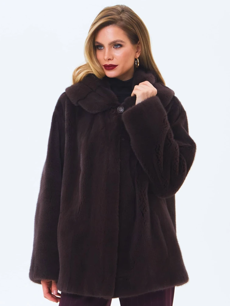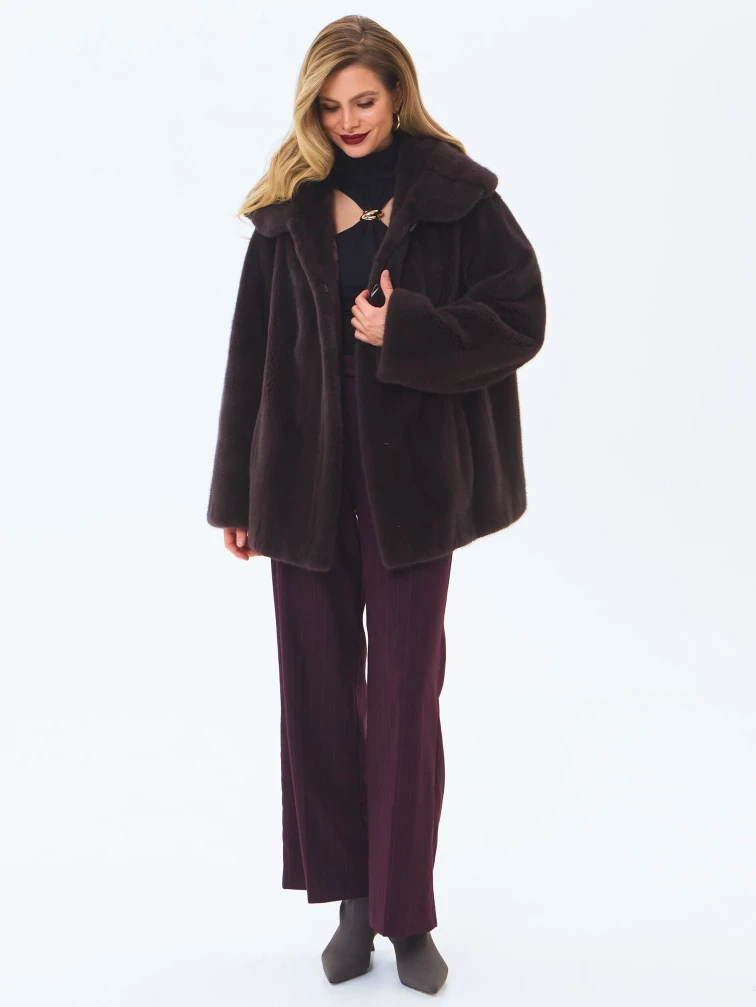 Женская норковая шуба с капюшоном премиум класса Жанета(к), коричневая, размер 58, артикул 34230