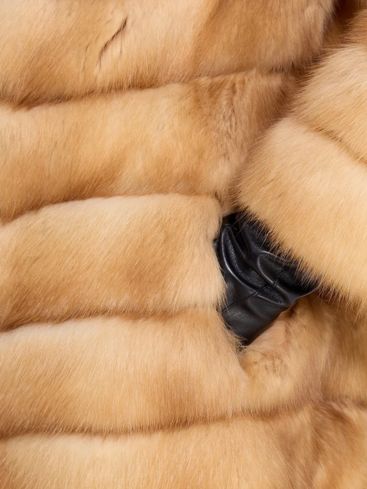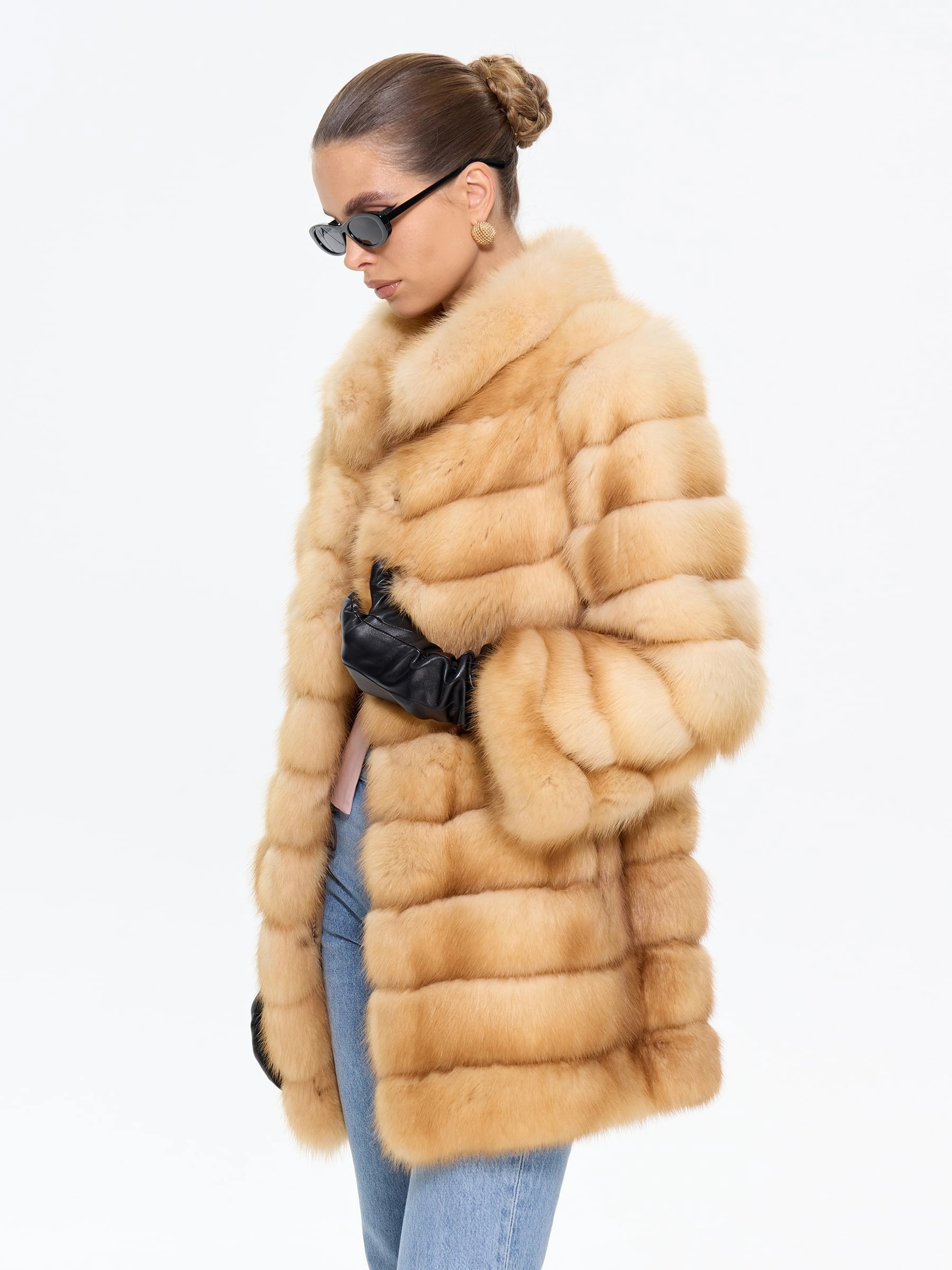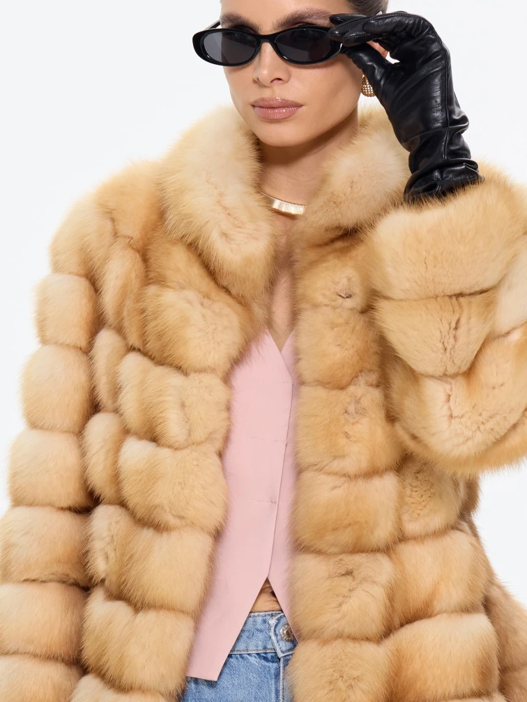 Элегантная шуба из меха куницы премиум-класса прямого силуэта, длиной 75 см, с изысканным воротником-стойкой и втачными рукавами на удобных клипсах. Эта модель станет жемчужиной вашего гардероба, даря ощущение роскоши и утонченного стиля. Стилисты рекомендуют носить эту шубу из меха куницы с воротником-стойкой в паре с кожаными леггинсами и сапогами-ботфортами для безупречного образа, а для вечернего выхода дополнить ее платьем-миди и лакированными лодочками.